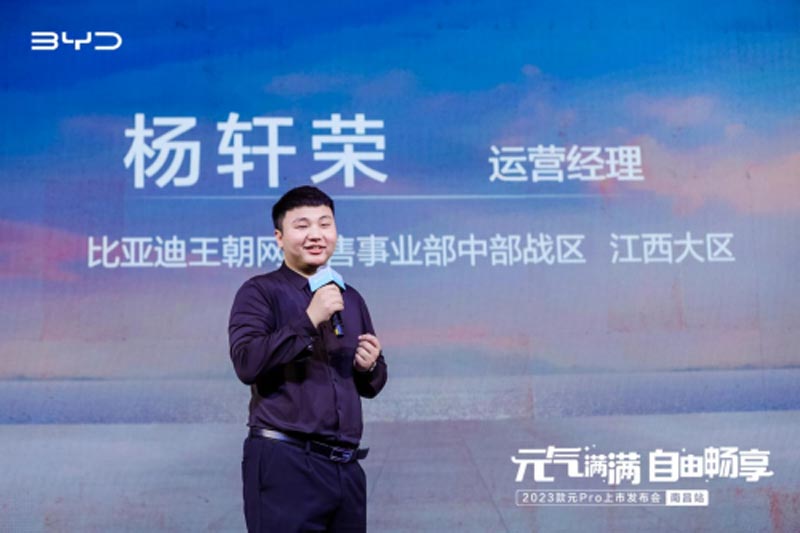 隨后,江西大區(qū)運營經理解鎖新車亮點、公布價格及購車政策,讓現場所有嘉賓對2023款元Pro有了更深層的認識。比亞迪用實際行動踐行用技術創(chuàng)新,滿足人們對美好生活的向往。